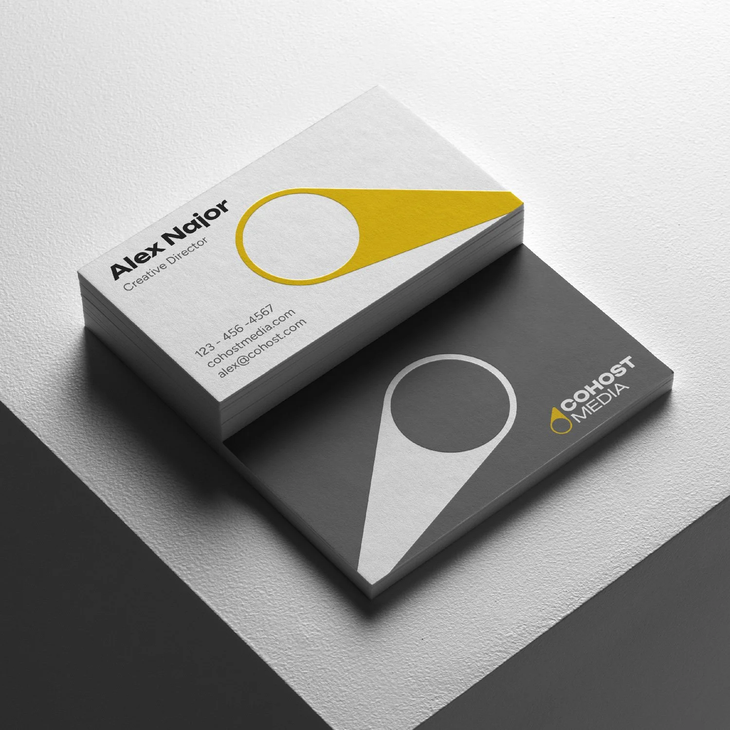 The meaning behind the name Cohost was so strong, that I couldn’t help but lean into the idea of incorporating a spotlight into the final design. After experimenting with a plethora of spotlight ideas (sketches at the top of the page), I had a tough time meeting the requirements of a minimal spotlight design without it feeling uninteresting. Alex made it evident that he wanted his design to be extremely minimal with little detail. Referring back to my sketches, if you look at the top right sketch (that looks like a fidget spinner haha), there was potential there, but I couldn’t shake the idea that it looked like a fidget spinner. After some collaborative back-and-forth feedback with Alex, we took out ¾ spotlights and were left with just one. After tweaking its placement and angle, we finalized the design, which aligned with the minimal yet meaningful idea Alex had envisioned.