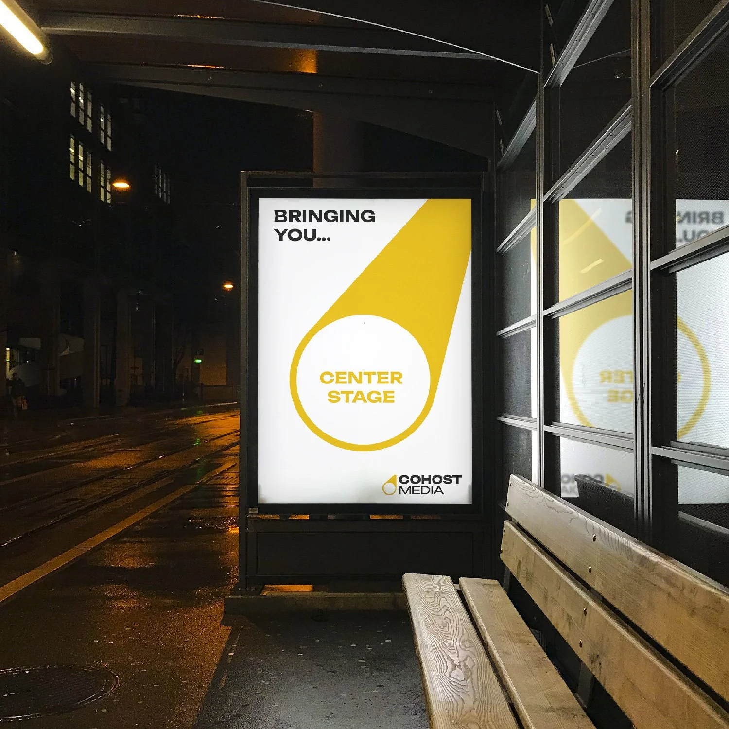 When designing a minimalistic visual identity, it’s difficult to differentiate the brand with the color palette and typography alone. Cohost required a distinctive visual element that could unify the brand and call back to the original logo. Since the logomark is a spotlight, I thought of manipulating its shape, by distorting, rotating, and stretching the spotlight (while maintaining the shape of the circle). This adaptation allows the spotlight to be versatile across various applications, such as marketing materials and merchandise, while feeling connected to the logomark. It can also be used in an animated application with the spotlight moving across different parts of the screen revealing different text and images. This idea brought Cohosts identity to life and truly separated them within their industry.